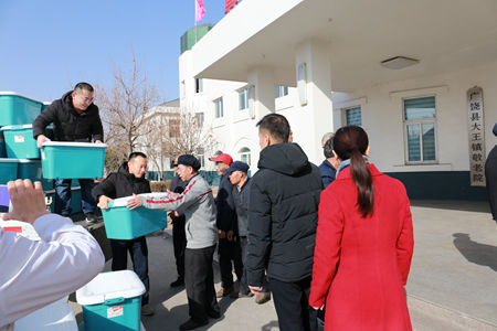 2018年2月12日,金嶺集團(tuán)總裁趙棟來(lái)到大王鎮(zhèn)敬老院走訪慰問(wèn),在新春佳節(jié)來(lái)臨之際為敬老院每位老人送去一份營(yíng)養(yǎng)品新春愛(ài)心大禮包,表達(dá)公司對(duì)老年人的關(guān)愛(ài)之情。大王鎮(zhèn)人大主席侯向斌、敬老院院長(zhǎng)王振江對(duì)公司多年來(lái)倡導(dǎo)尊老敬老、關(guān)注養(yǎng)老事業(yè)的舉動(dòng)給予高度評(píng)價(jià)。