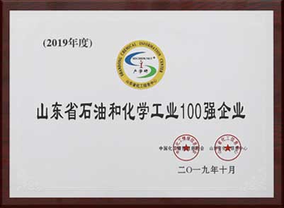 2019年10月15日至17日,第八屆中國化工產學研高峰論壇在淄博隆重召開,2019山東省石油和化學工業(yè)100強企業(yè)發(fā)布會同期舉行。在會上,中國化工情報信息協(xié)會和山東省化工信息中心參照慣例并結合山東省企業(yè)的現(xiàn)實數(shù)據,通過主管部門、各地市、各化工園區(qū)管理委員會推薦,根據企業(yè)主營業(yè)務收入數(shù)據,經過綜合評議,排出了2019山東省石油和化學工業(yè)100強企業(yè),公司位列第11位,并入圍山東化工新材料行業(yè)十強企業(yè)。