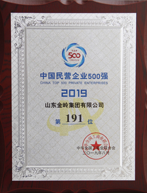 2019年8月22日,由全國工商聯(lián)、青海省人民政府共同主辦的“2019中國民營企業(yè)500強(qiáng)峰會”在青海西寧舉行。會議發(fā)布了2019中國民營企業(yè)500強(qiáng)系列榜單,公司入榜“2019中國民營企業(yè)500強(qiáng)”,位列第191位,同時入榜“2019中國民營企業(yè)制造業(yè)500強(qiáng)”,位列第110位。