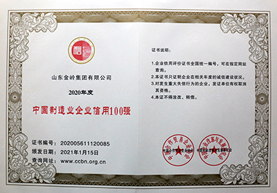 2021年1月16日,由中國(guó)合作貿(mào)易企業(yè)協(xié)會(huì)、中國(guó)企業(yè)改革與發(fā)展研究會(huì)主辦的“2021中國(guó)企業(yè)信用發(fā)展論壇暨第十二屆誠(chéng)信公益盛典”在北京隆重召開(kāi)。在會(huì)上,金嶺集團(tuán)獲評(píng)“中國(guó)AAA級(jí)信用企業(yè)”,總裁趙棟獲評(píng)“全國(guó)優(yōu)秀誠(chéng)信企業(yè)家”。會(huì)議還發(fā)布了2020年度中國(guó)企業(yè)信用500強(qiáng)系列榜單,金嶺集團(tuán)成功入圍“中國(guó)企業(yè)信用500強(qiáng)”、“中國(guó)制造業(yè)企業(yè)信用100強(qiáng)”、“中國(guó)民營(yíng)企業(yè)信用100強(qiáng)”,受到大會(huì)表彰。多年來(lái),金嶺集團(tuán)始終高度重視企業(yè)誠(chéng)信體系建設(shè),不斷加強(qiáng)合同履約考核,提升了全體員工的誠(chéng)信意識(shí),營(yíng)造了“守信光榮,失信可恥”的氛圍,樹(shù)立了良好的企業(yè)信用形象。
