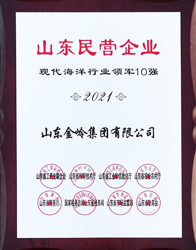 2021年12月,山東省工商業(yè)聯(lián)合會、山東省科學(xué)技術(shù)廳、山東省工業(yè)和信息化廳等8個單位聯(lián)合評價的“山東民營企業(yè)100強(qiáng)、山東民營企業(yè)現(xiàn)代海洋行業(yè)領(lǐng)軍10強(qiáng)”名單發(fā)布,金嶺集團(tuán)入圍兩項(xiàng)榮譽(yù),在山東民營企業(yè)100強(qiáng)中位列第24位。
