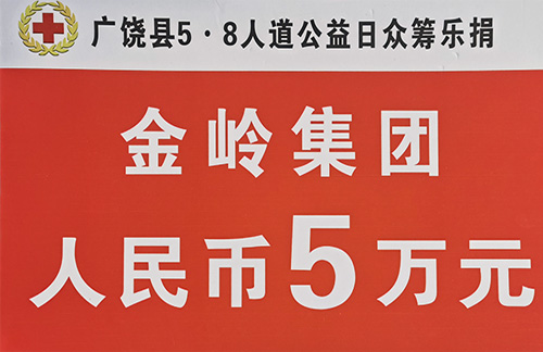 2022年5月8日,在廣饒縣首屆“5.8人道公益日”眾籌樂捐活動啟動儀式上,金嶺集團(tuán)向廣饒縣紅十字會現(xiàn)場捐贈人民幣5萬元。多年來,公司大力支持社會公益事業(yè),積極參與愛心捐贈活動,多次受到表彰,彰顯了公司強(qiáng)烈的社會責(zé)任感,體現(xiàn)了公司的擔(dān)當(dāng)精神。