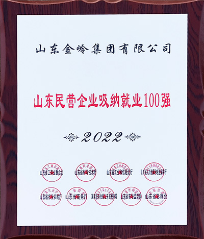 2022年9月,山東省工商業(yè)聯(lián)合會、山東省科學(xué)技術(shù)廳、山東省工業(yè)和信息化廳等9個(gè)單位聯(lián)合授予金嶺集團(tuán)“山東民營企業(yè)吸納就業(yè)100強(qiáng)”榮譽(yù)稱號,對公司在緩解當(dāng)?shù)鼐蜆I(yè)壓力、穩(wěn)就業(yè)、保民生方面做出的突出貢獻(xiàn)給予充分肯定并進(jìn)行表彰。