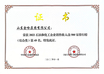 2022年11月29日,由中國(guó)石油和化學(xué)工業(yè)聯(lián)合會(huì)與化工企業(yè)管理協(xié)會(huì)主辦的中國(guó)石油和化工企業(yè)500強(qiáng)發(fā)布會(huì)以網(wǎng)絡(luò)會(huì)議形式召開。在會(huì)上,中國(guó)石化聯(lián)合會(huì)、化工企業(yè)管理協(xié)會(huì)聯(lián)合發(fā)布了“2022中國(guó)石油和化工企業(yè)銷售收入前500家”榜單,金嶺集團(tuán)位列綜合類第49位;金嶺化工股份公司位列獨(dú)立生產(chǎn)經(jīng)營(yíng)類第35位、位列“中國(guó)專用化學(xué)產(chǎn)品企業(yè)銷售收入前100家”第3位。