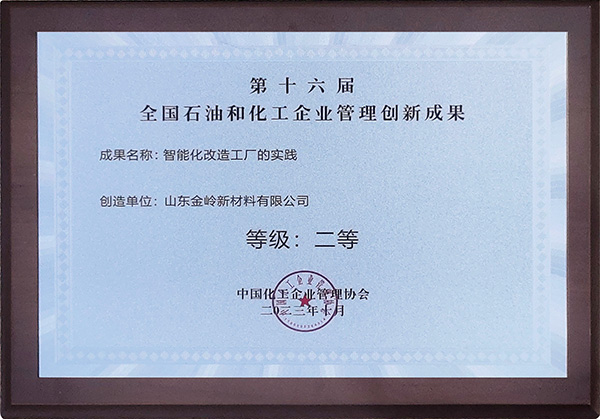 2023年10月26日,中國化工企業(yè)管理協(xié)會在青島召開第十六屆全國石油和化工企業(yè)管理創(chuàng)新大會,金嶺新材料公司創(chuàng)新成果“智能化改造工廠的實踐”榮獲二等獎。