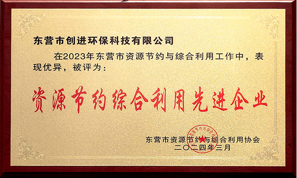 東營市創(chuàng)進(jìn)環(huán)保科技有限公司被評為“資源節(jié)約綜合利用先進(jìn)企業(yè)”