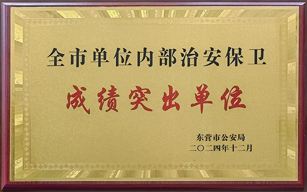 2025年2月20日,山東金嶺化工股份有限公司被東營市公安局評為“全市單位內(nèi)部治安保衛(wèi)成績突出單位”。