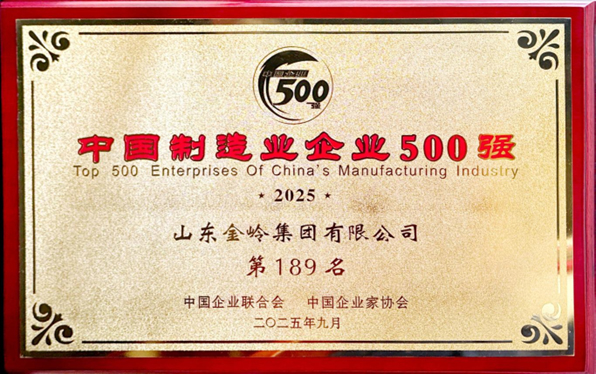 2025年9月,中國企業(yè)聯(lián)合會、中國企業(yè)家協(xié)會發(fā)布2025中國企業(yè)500強、2025中國制造業(yè)企業(yè)500強榜單,金嶺集團位列“2025中國企業(yè)500強”第365位;“2025中國制造業(yè)企業(yè)500強”第189位;公司已連續(xù)13年入圍中國企業(yè)500強、中國制造業(yè)企業(yè)500強。