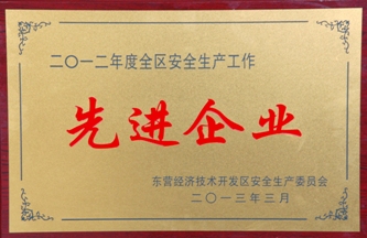 近日,東營經(jīng)濟技術(shù)開發(fā)區(qū)安全生產(chǎn)委員會授予新材料公司2012年度安全生產(chǎn)先進企業(yè)稱號,以表彰公司在有效防范各類事故發(fā)生,確保全區(qū)安全生產(chǎn)形勢持續(xù)穩(wěn)定,推動高效生態(tài)園區(qū)建設(shè)中做出的突出貢獻。